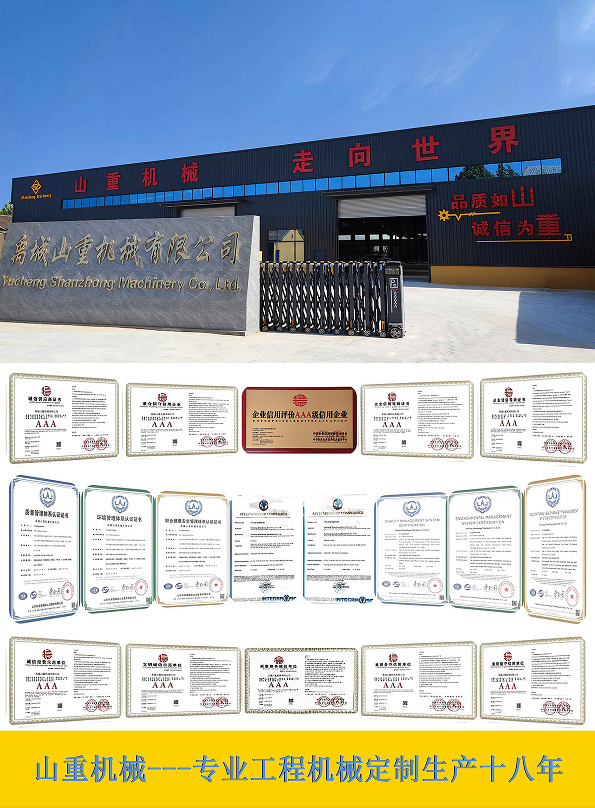 集團公司自2007年初成立至今,致力于工程機械專業定制化生產18年。其產品包含:輪式挖掘機(4-21噸),履帶挖掘機(1-50噸),以及各種型號配置的挖掘裝載機,裝載機等。滿足客戶或招標的特殊要求。我們始終秉持:創(chuàng)新,合作,共贏的經營理念,共同來做大做強國產工程機械行業。